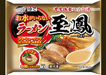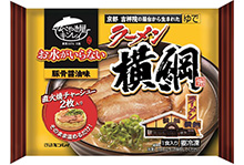 京都発祥の人気店『ラーメン横綱』監修商品です。豚骨等から炊き出した濃厚な深いコクのあるストレートスープが特徴です。具材は、チャーシュー2枚、メンマ、青ねぎを盛り付けました。