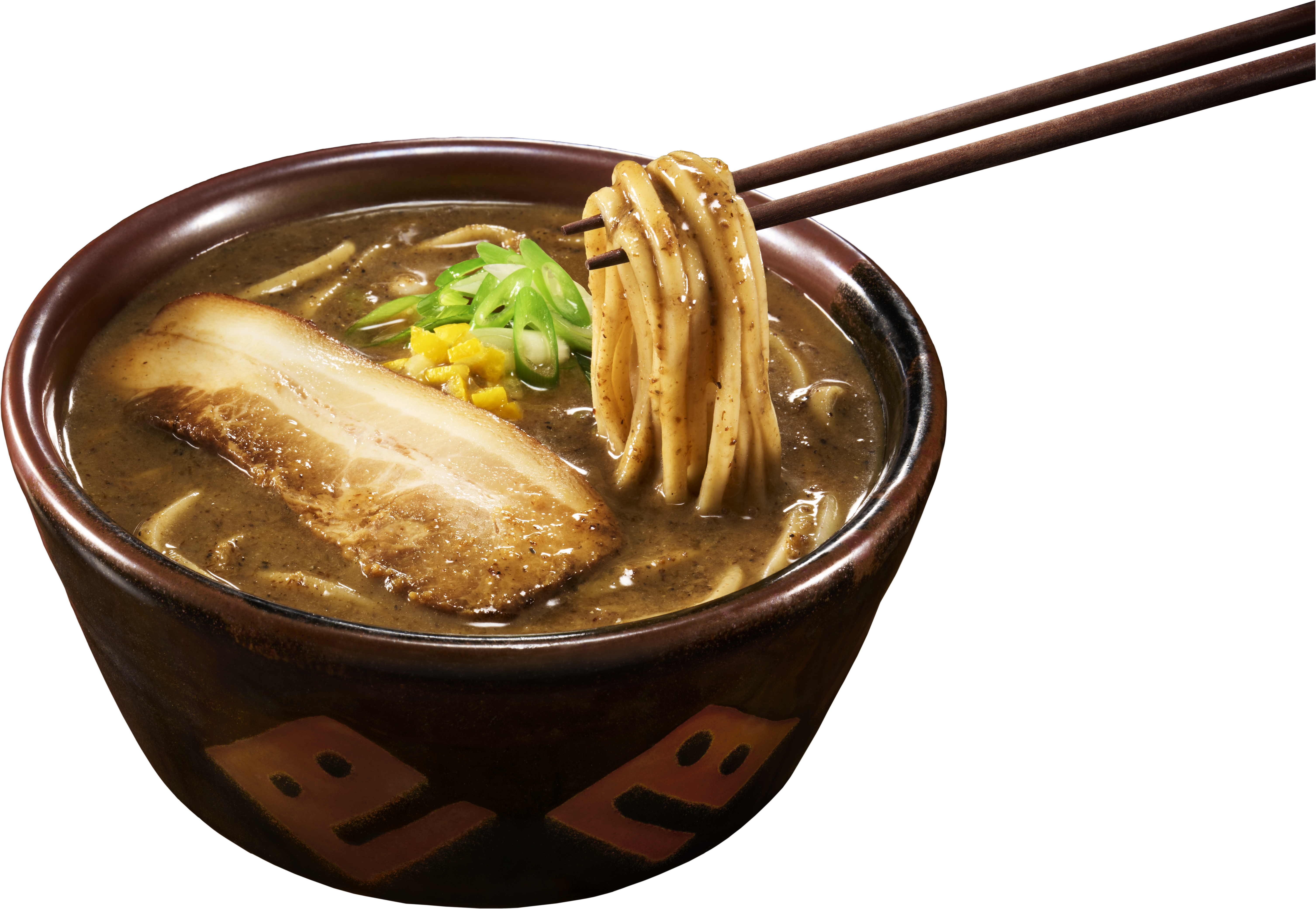 <スープ>ざらっとした質感の濃厚豚骨に、風味が異なる2つの煮干しと鯖を合わせて、旨味重なるガツンとした味わいのスープです。途中で柚子七味を加えると、濃厚なスープが引き締まり、ひと味違った美味しさが楽しめます。