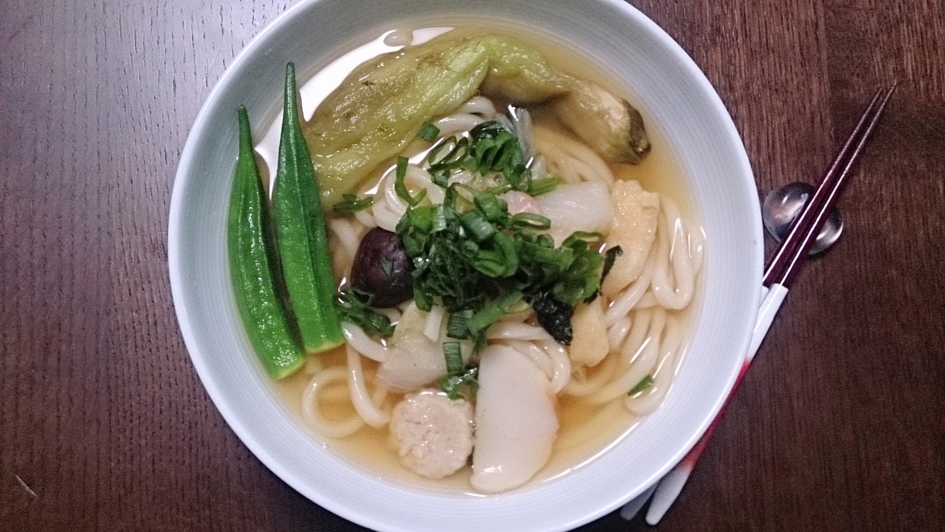 焼きナスとオクラの煮びたし風鍋焼うどん:杉田恵美様のアイディア