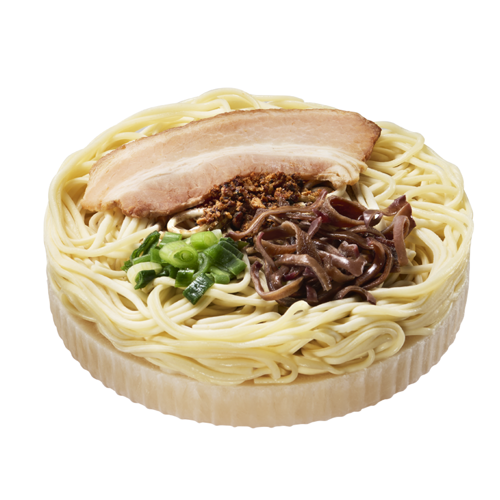 ストレートスープ、麺、具材を三層構造にして凍らせているので、