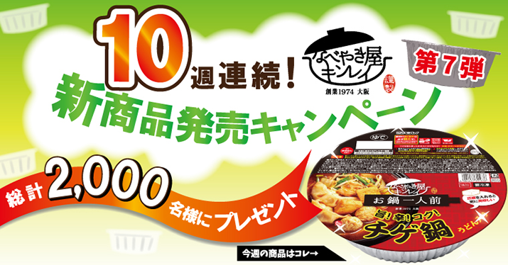 【総勢2000名様】10週連続!新商品キャンペーン(旨!辛!コク!チゲ鍋 うどん入り)